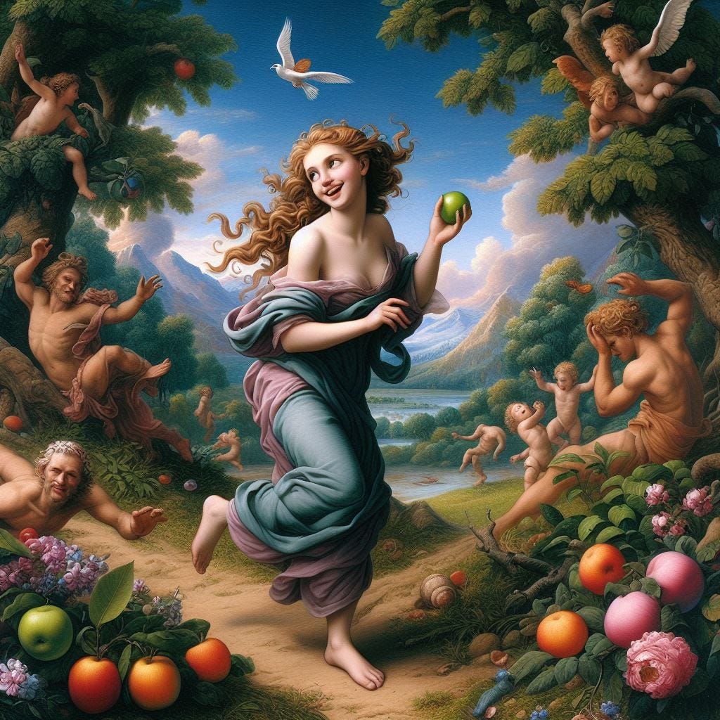 In the Mormon version of the Christian origin story, Eve chose to partake of the fruit, not because she got duped by a snake, but because she recognized that God had given contradictory commandments. Multiply and replenish the earth, but stay away from the fruit of the tree of knowledge of good and evil. The mighty change from a state of innocence to a state of consciousness (and therefore responsibility for one’s choices) had to be entered by an act of agency. And it might as well be her.